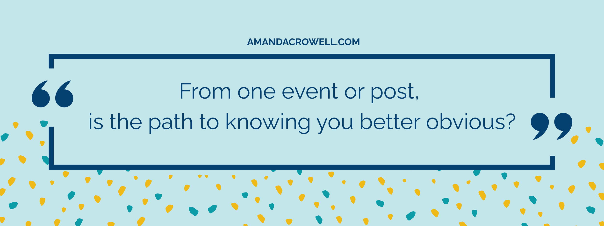 Ask Yourself: If someone only knew you from a single post, event, or podcast episode, what would they know how to get to know you better? If not, what “doorway” do you need to put in place?